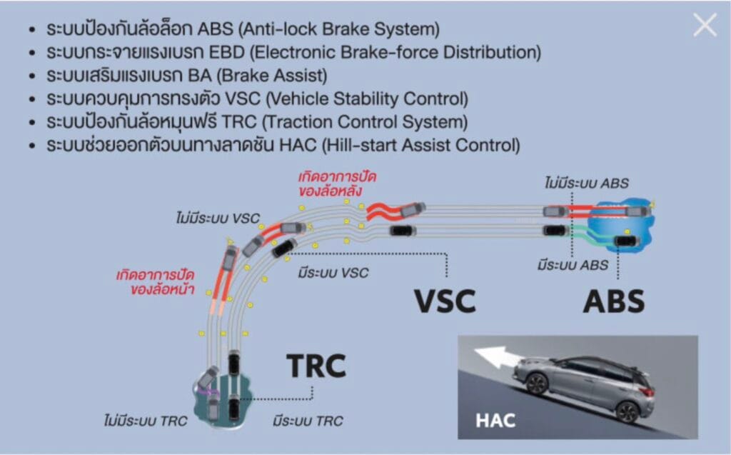 - HAC ระบบช่วยออกตัวบนทางลาดชัน (Hill-start Assist Control)